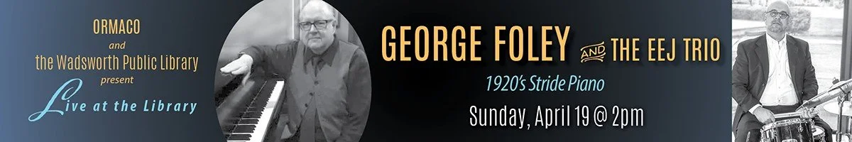 Ohio Regional Music Arts and Cultural Outreach (ORMACO) and the Wadsworth Public Library continue Sunday Live at the Library showcasing George Foley on Sunday, April 19, 2026 at 2pm at the Wadsworth Public Library, 132 Broad Street, Wadsworth, OH 44281.