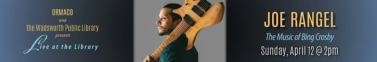 Ohio Regional Music Arts and Cultural Outreach (ORMACO) and the Wadsworth Public Library continue Sunday Live at the Library with jazz vocalist and guitarist Joe Rangel on Sunday, April 12, 2026 at 2pm at the Wadsworth Public Library, 132 Broad Street, Wadsworth, OH 44281.